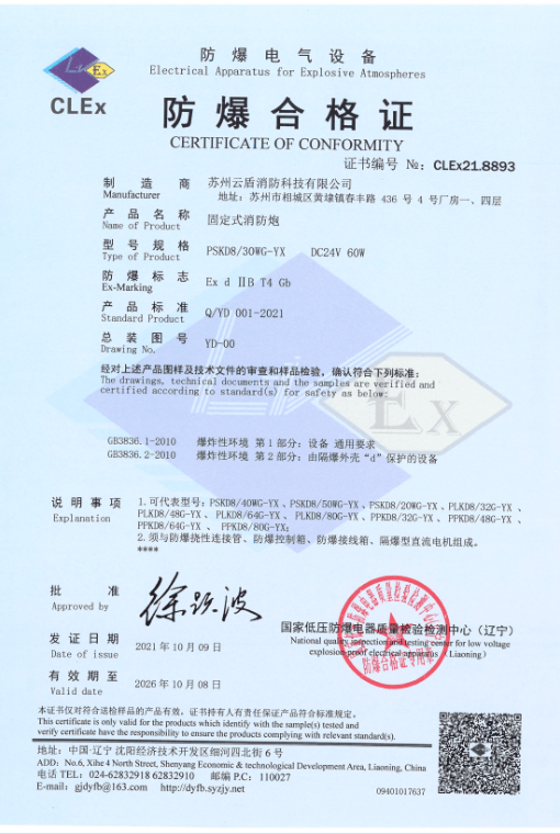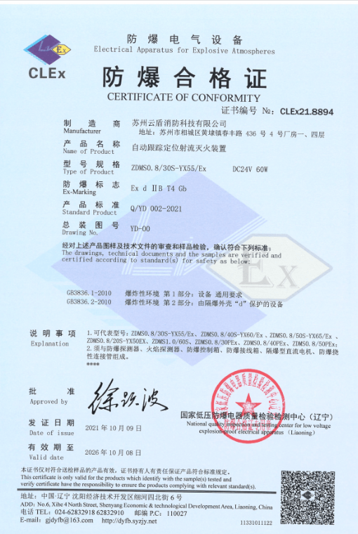 电控炮防爆合格证