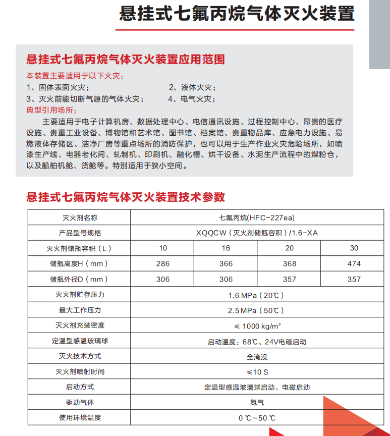 产品名称:悬挂式七氟丙烷气体灭火装置