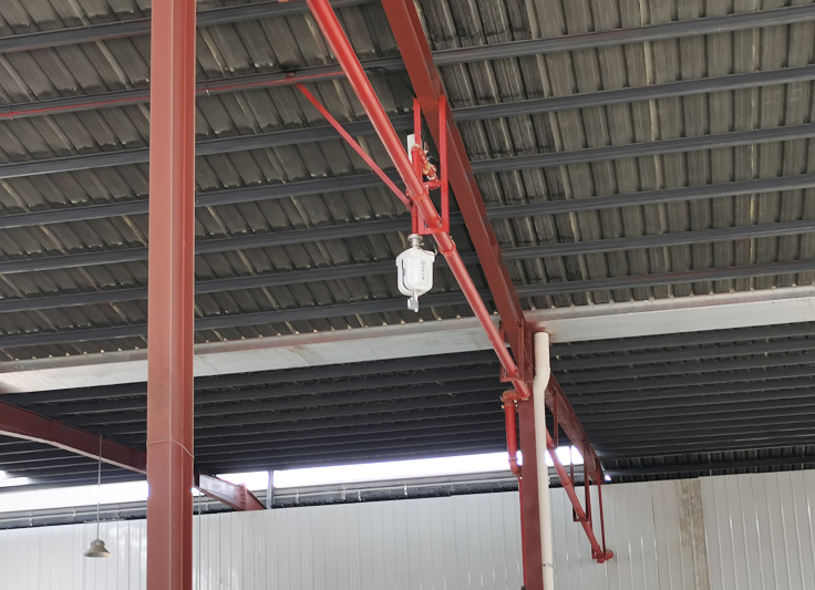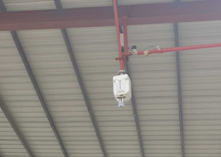 江苏瑞构新型材料有限公司消防水炮型号采用ZDMS0.6/5S智能消防炮,ZDMS0.6/5S智能消防炮参数:流量5L/S,保护半径30M,额定工作压力0.6MPA,这种智能消防炮,无需人为操作,发现火源,自动跟踪定位喷水灭火,是比较常用的智能消防炮型号,施工简单,外形美观等。现场安装情况如下:
