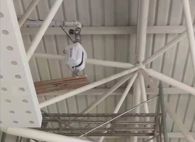 浙江临安文体会展中心安装云盾消防水炮,型号分别为ZDMS0.6/5S消防水炮,ZDMS0.8/20S消防水炮,现在安装图片如下: