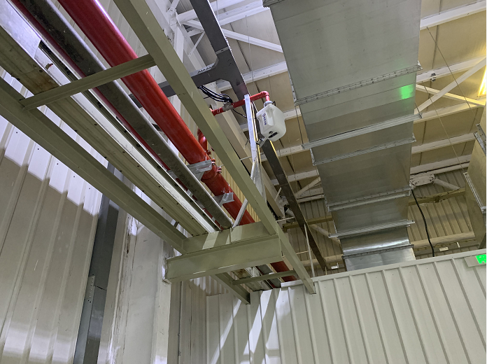 上海延锋金桥饰件系统有限公司,专注于汽车内外饰、座椅、电子及被动安全领域,致力于为全球主要汽车厂商提供领先的产品解决方案,海外业务占比接近三成,220余家工厂遍布世界.该公司二期厂房采用苏州云盾消防科技有限公司生产的ZDMS0.6/5S-YX30大空间自动智能消防水炮,产品具有施工简单,灭火效果好等优点,现场安装实图如下: