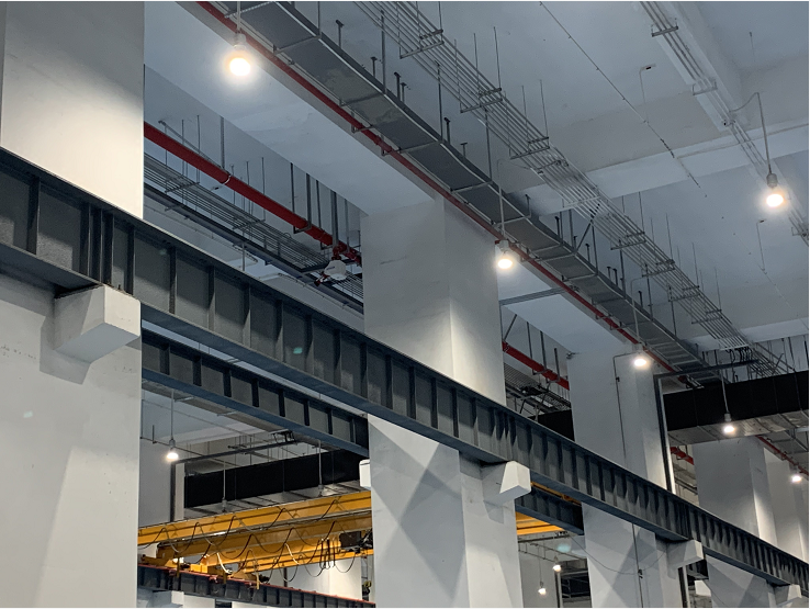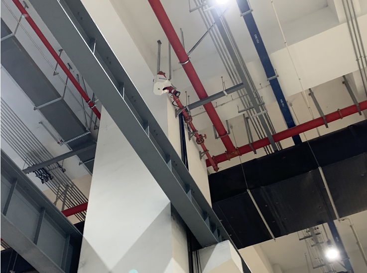 杭州地铁3号线一期工程星桥车辆段SG3-16标项目,该项目采用苏州云盾大空间智能消防水炮,大空间智能消防水炮,型号:ZDMS0.8/30S-YX55,额定工作压力0.8MPA,流量30L/S,保护半径55M,性能特点:大空间智能型主动喷水灭火系统(即自动消防水炮灭火系统)由给水管网和电器控制二部分组成。自动消防水炮给水管网由自动消防水炮体(含定位器)、电动阀门、水流指示器、供水管路、消防水泵及水池;电器控制部分由消防炮定位器、消防炮解码器、消防炮控制器、现场手动控制盘、消防泵控制盘、消防水炮集中控制盘以及消防水泵控制等部分组成。全天候地自动监控被保护区域,一旦发生火灾,水炮立即启动,迅速对火源进行水平方向和垂直方向的智能扫描,确定火源的水平和垂直坐标,中央控制器发生指令,发出火警信号,同时启动水泵、打开阀门喷水灭火。现场安装实图如下: