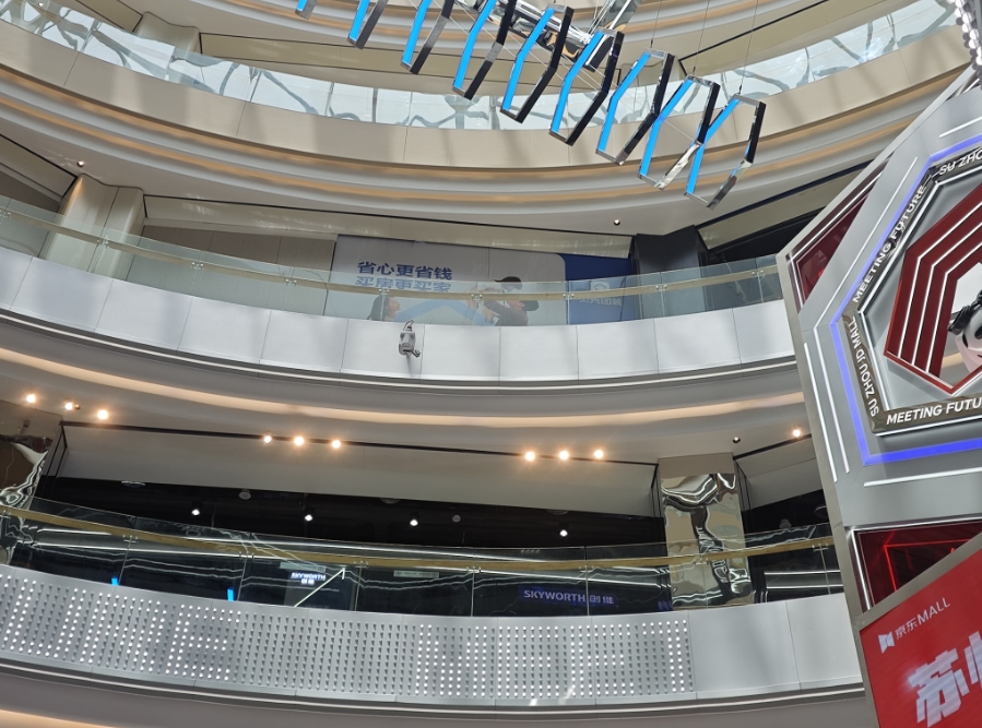 苏州京东MALL共有三层,一层主营手机、数码电脑、生活小家电、个护健康、汽车等商品,二层主营厨卫、空调、建材卫浴,三层以冰箱、洗衣机、影音、进口家电等生活大家电为主,每一层的布局都让人眼前一亮。