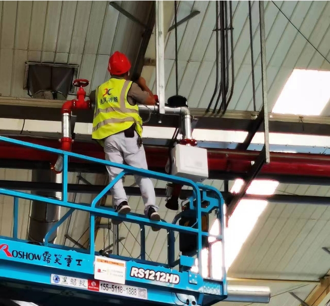 合肥延锋云鹤BYD项目消防改造项目安装云盾全自动消防水炮,采用型号:ZDMS0.8/30S-YX55智能消防水炮,额定工作压力0.8mpa,保护半径可达55M,射水流量30L/S,ZDMS0.8/30S-YX55智能消防水炮(以下简称灭火装置)是集探测、报警、灭火于一体的新一代科技、智能消防灭火产品。
