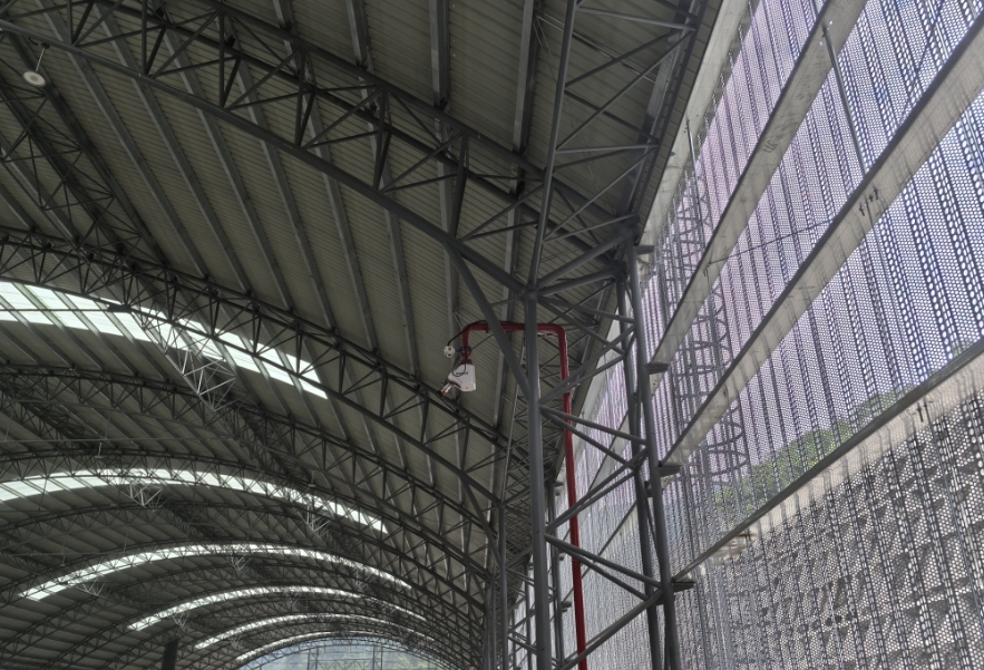 ZDMS0.8/30S-YX55智能消防水炮采用紫外启动、红外定位及CAN总线通讯技术,具有较高的智能跟踪定位射流灭火能力。本灭火装置主要应用于大空间厂房、仓库、体育场馆、电影院、机场、会展中心、大型商场等场所。若更改射流介质为灭火剂时,本灭火装置还可应用于微机机房、加油站、高精密仪表等更为复杂的场所。现场安装实图如下: